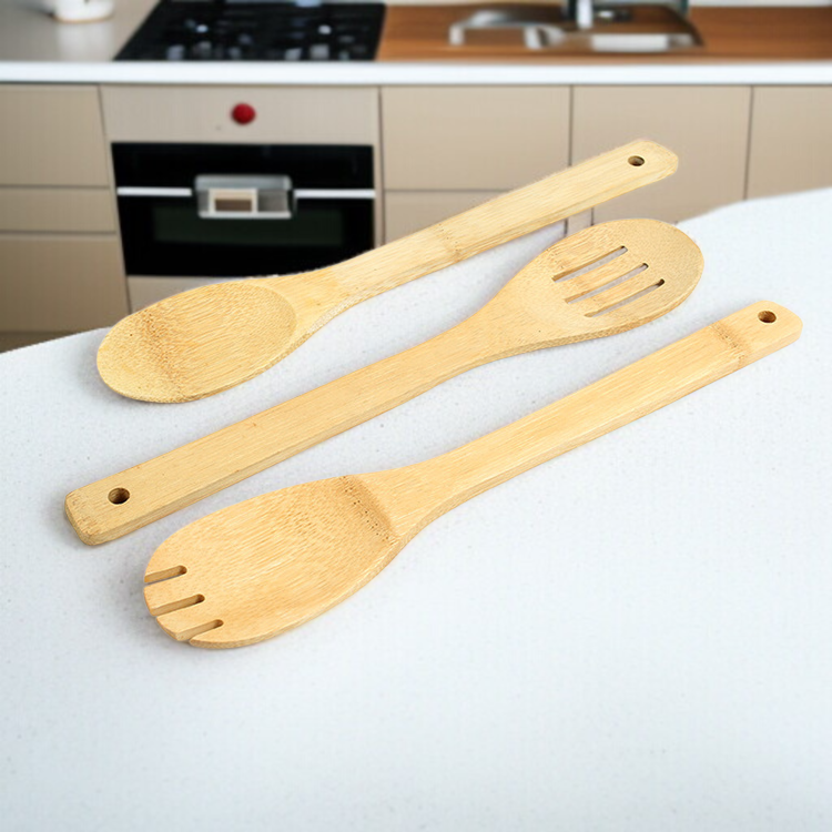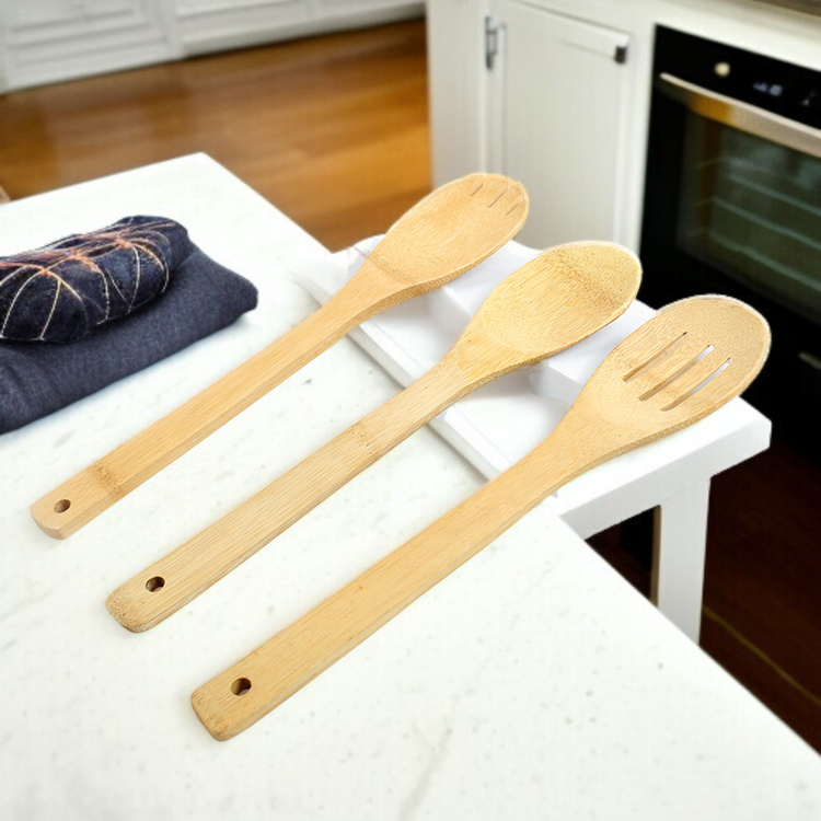 ● Crafted from premium natural bamboo, this kitchen spatula offers eco-friendly durability and a smooth finish, making it perfect for daily cooking tasks without scratching cookware.
