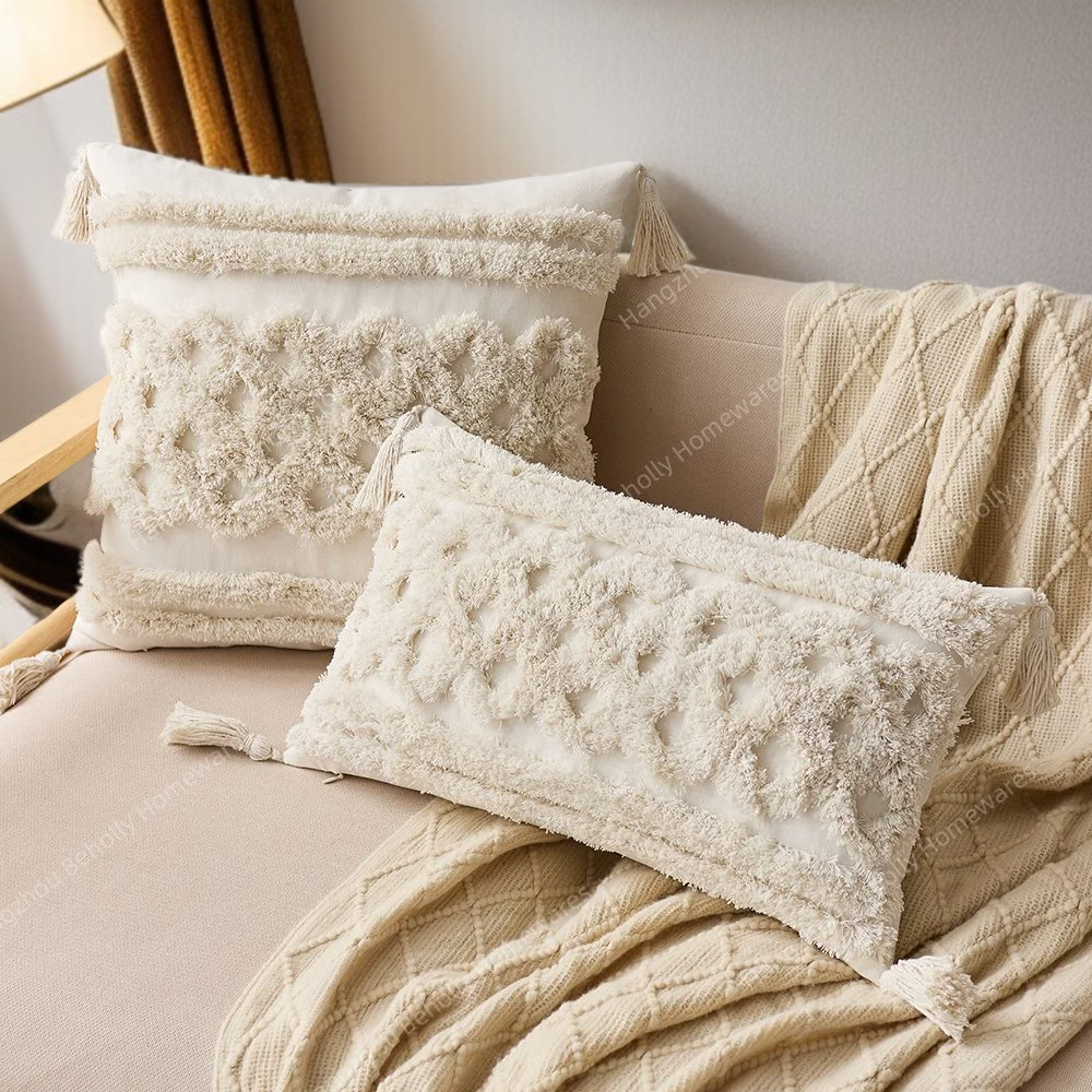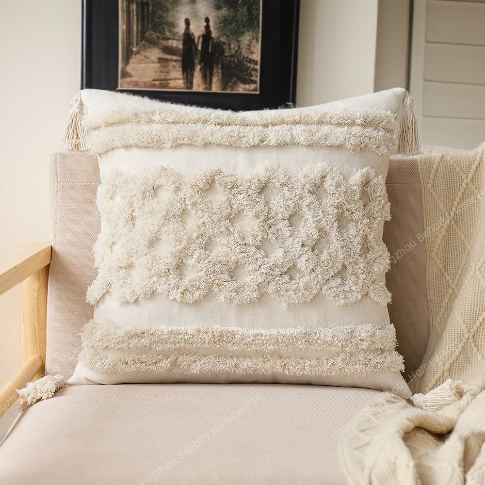 2025 New Modern Designer Home Boho Cushion Linen Pillow Case Beige Boho Throw Decorative Pillowcases
